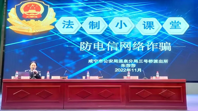 温泉分局三号桥派出所教导员朱莎莎做专题讲座《法制小课堂-防电信网络诈骗》,朱警官通过分发宣传资料、现场讲解、播放视频等形式,结合真实生动的案例,向师生们讲解最新的网络诈骗手法和防范知识,还从新型网络诈骗案例入手,指出大部分人容易上当受骗的原因,提醒学生增强防骗意识,掌握防骗知识,提高安全防范意识,让反诈骗宣传入眼、入耳、入心。
