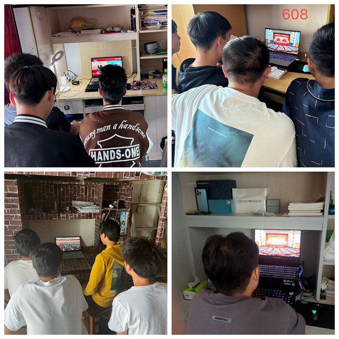 图1 全体教职工及学生代表在建筑楼210集中收看开幕会