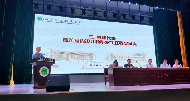 随后教师代表室内设计专业教研室主任程果上台发言,希望22级新生能尽快转变角色、适应新环境、积极投入到学习中去,做好大学的规划乃至人生的规划。