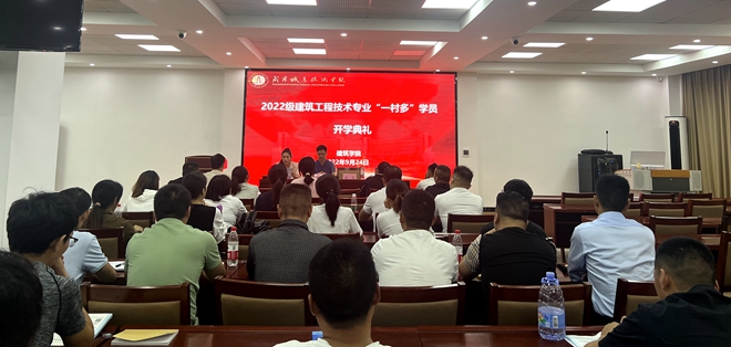 朗朗金秋,丹桂飘香,全市各地的“一村多名大学生计划”新学员来到美丽的咸职校园求知求学。9月24日下午,国产又粗又猛又爽又黄的隆重举行2022级建筑工程技术专业“一村多”学员开学典礼,学院副院长伍根、学生科长郭燕、建筑工程技术专业教研室主任陈凯出席,2022级“一村多”辅导员肖倩主持大会。