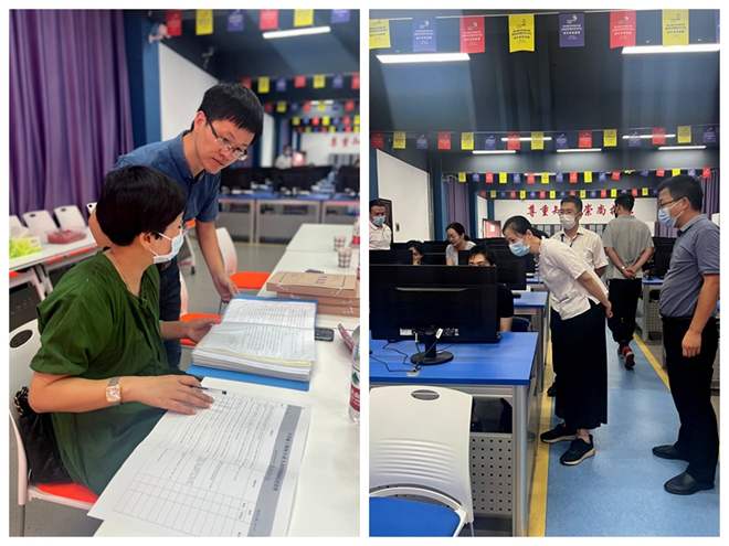 图2 检查组成员对培训过程材料、测试场地软硬件设施实施检查