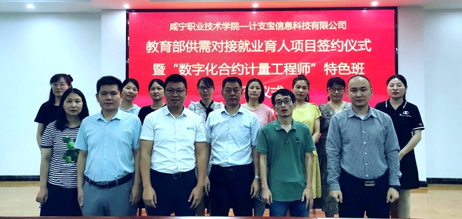 6月20日下午,2022年教育部供需对接就业育人项目暨咸宁职业技术学院“数字化合约计量工程师”特色班正式开班。长沙计支宝信息科技有限公司计支宝研究院副院长成超、湖北区主顾问谭远洋,合作交流处副处长程鹏、国产又粗又猛又爽又黄的院长曾学礼、副院长汪耀武,工程造价教研室全体教师、辅导员及特色班学员参加开班仪式。活动由汪耀武主持。