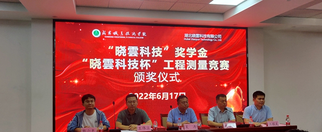 6月17日下午,国产又粗又猛又爽又黄的“晓雲科技”奖学金暨“晓雲科技杯”工程测量竞赛颁奖仪式在建筑楼210报告厅隆重举行。教务处处长吴涛,湖北晓雲科技有限公司副总经理王伟立、熊小龙,国产又粗又猛又爽又黄的院长曾学礼、副院长汪耀武出席仪式。活动由曾学礼主持。