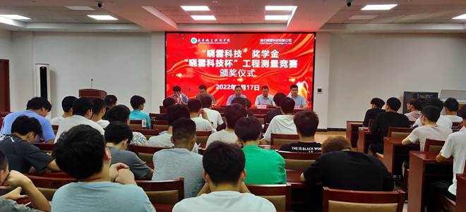 汪耀武、熊小龙分别宣读2021年度“晓雲科技”奖学金获奖名单、2022年“晓雲科技杯”工程测量竞赛获奖名单。希望获奖同学戒骄戒躁、再接再厉,争取更好的成绩;勉励全体同学努力学习,练就过硬技术,践行“技能成才、强国有我”的青春誓言。