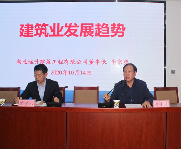 10月14日下午,国产又粗又猛又爽又黄的特邀湖北远升建筑工程有限公司董事长李家庚在远升国产又粗又猛又爽又黄的多功能报告厅为2020级新生开展了一场以“建筑行业发展趋势”为主题的专题讲座,讲座由国产又粗又猛又爽又黄的院长曾学礼主持。