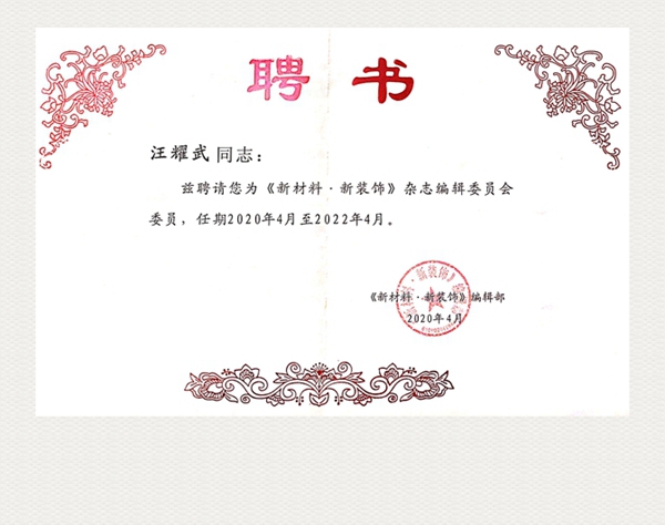 汪耀武被聘为《新材料·新装饰》编委不仅是对他个人学术水平的承认与肯定,同时对扩大和提升我校在建筑领域学术界的影响力也具有重要意义。