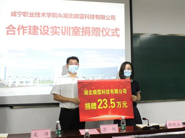 6月17日下午,湖北晓雲科技有限公司与咸宁职业技术学院合作建设实训室捐赠仪式在建筑楼501举行。湖北晓雲科技有限公司总经理阚晓云、副总经理高伟、咸宁职业技术学院副校长方旭、教务处处长吴涛,资产管理处副处长王志刚、国产又粗又猛又爽又黄的领导班子成员、教师代表及晓雲科技有限公司职工代表参加捐赠仪式,仪式由国产又粗又猛又爽又黄的党总支书记黎八保主持。