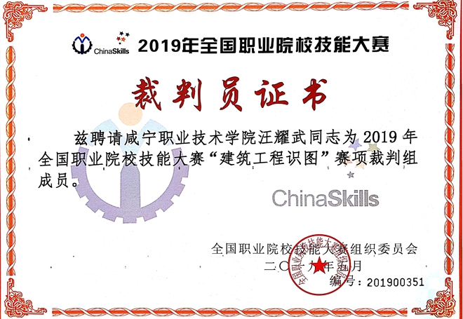 本次大赛由教育部主办,天津城市建设管理职业技术学院协办,共有来自全国30余个省、市、自治区的105所职业院校共计210名选手参赛。汪耀武老师多次担任湖北省建筑CAD大赛和建筑工程识图省赛、国赛等赛项裁判,具有丰富的执裁经验。