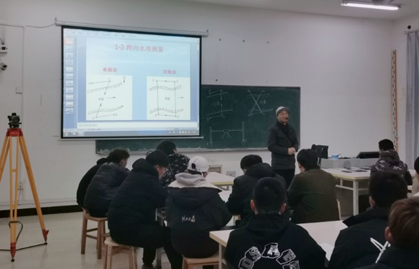 何礼军副教授首先通过问题“在水面上能否架设仪器进行测量”引发学生思考,同时引出本次课的学习任务——跨河水准测量。他适时引入课程思政,启发同学们在实践过程中要以安全第一。同时,结合自己做过的实践项目讲解测量技巧,将理论和实践结合起来,让学生对跨河水准测量有了更清楚的认识,在良好的学习氛围中轻松掌握所学知识,体现出了过硬的专业素养,得到了方校长的好评。课后,方校长对何老师教案、教师工作手册等基本教学资料进行了检查。