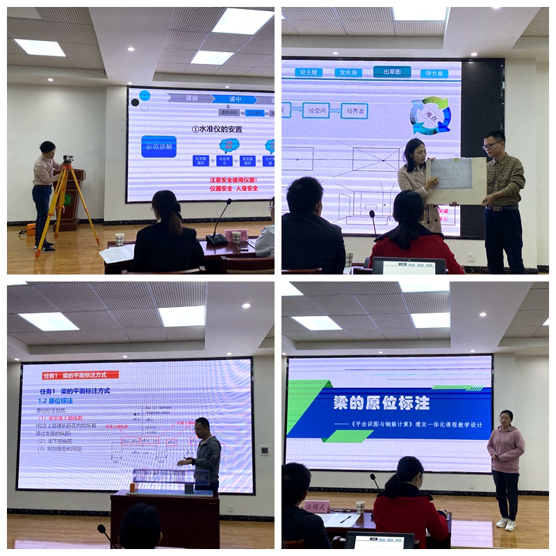 本次比赛严格按照省赛规则进行,分现场制作参赛作品和现场讲解模拟教学两个环节。参赛团队上午完成参赛作品的制作,下午分别从教学设计、实际教学实施和教学实施报告三个环节进行展示。在现场教学展示中,教师运用扎实的专业知识和职业素养,从教学方法、教学过程、教学效果、教学实施情况等方面全面清晰地向评委展示教学设计和实施过程。比赛结束后,评委分别从教学设计、实施过程、思政融合等方面对参赛团队的表现进行了点评。