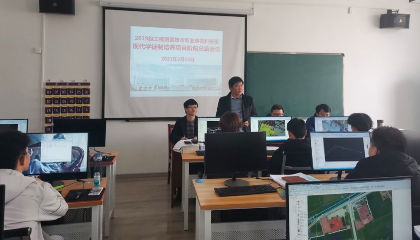 会上,企业师傅代表、公司项目经理李锐介绍了自去年9月“晓雲科技班”现代学徒制创新培养项目正式启动以来全班同学参与“咸宁市新型基础测绘试点”等项目实践的总体情况,肯定了同学们的成绩,对同学们的生产技能训练提出了建议。