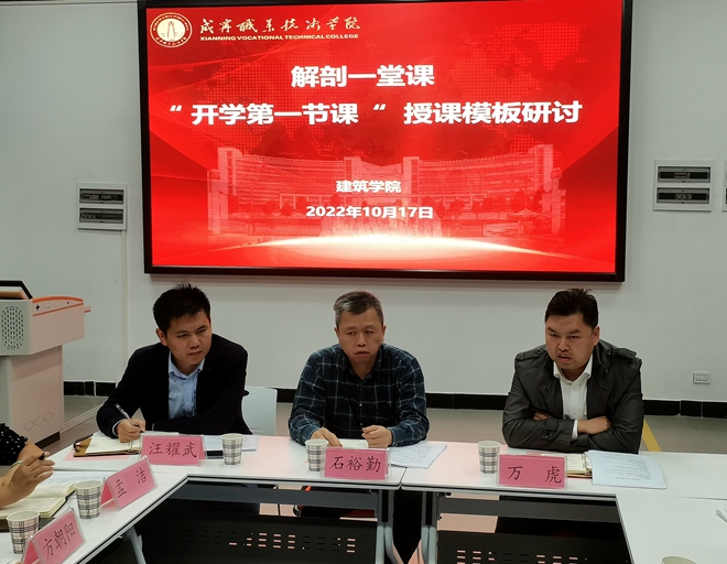 各教研室主任首先汇报专业“开学第一节课”授课模板形成过程。2022级新生开课前,各专业组织集中备课,就专业课程“为什么学、学什么、怎么学”这三个问题开展“开学第一节课”的教学设计,将教学目标、教学内容、学习方法、考核方式、教学成效、课程思政等融入课堂教学,并通过实际教学验证教学设计。在此基础上,各专业组织开展了“开学第一节课”集中听课,并召开专题教研活动,总结归纳授课教师的教学设计,形成了具有专业课程特色的“开学第一节课”教学授课模板。