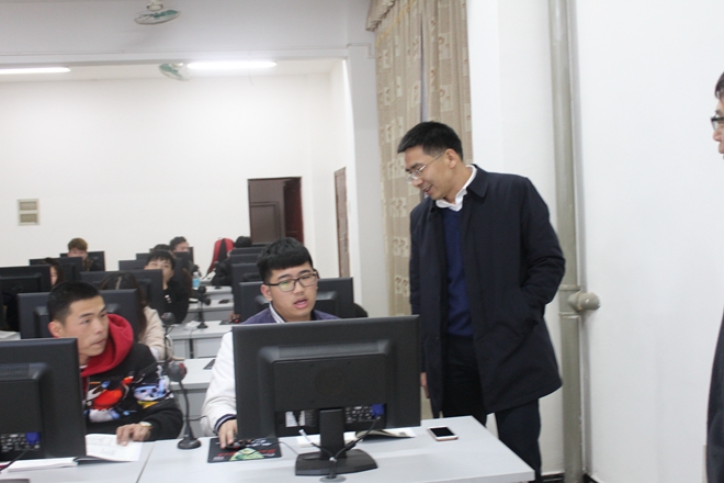 高校长巡查学生实训课堂情况
