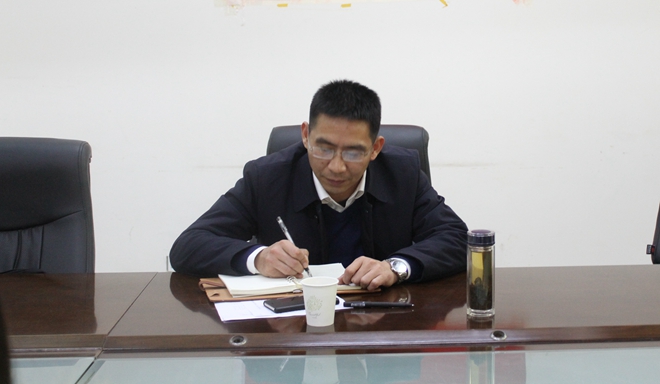 高校长听汇报做记录