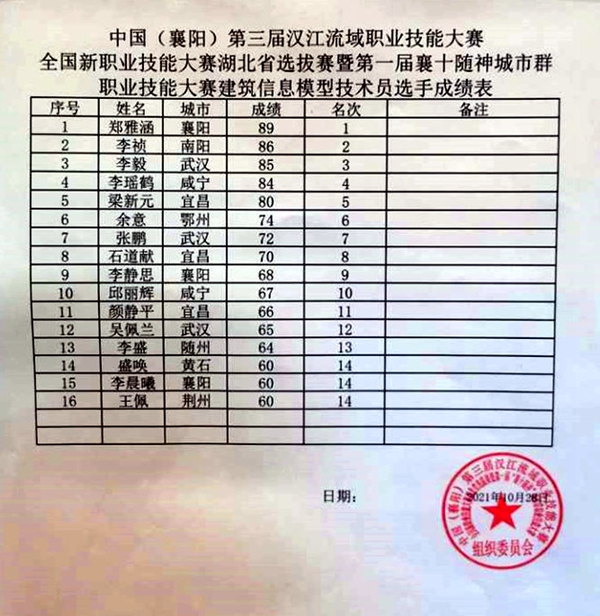10月26-28日,第三届汉江流域职业技能大赛、全国新职业技能大赛湖北省选拔赛暨第一届“襄十随神”城市群职业技能大赛在湖北襄阳举行,来自湖北、陕西、河南3省22个城市的代表队围绕9个职业(工种)同台竞技。我院派出BIM团队成员李瑶鹤、邱丽辉参加“建筑信息模型技术”赛项,陈凯老师作为裁判参与阅卷。