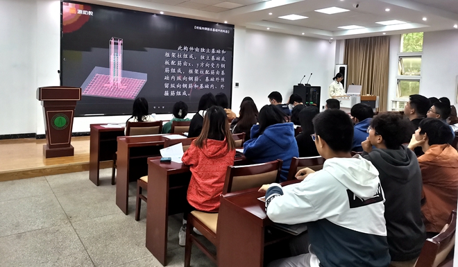 当天上午讲解了“独立基础钢筋算量”和“框架柱钢筋算量”手工计算实例,授课过程中结合最新平法图集,利用虚拟仿真软件,给学生呈现了一堂生动的平法理论课。