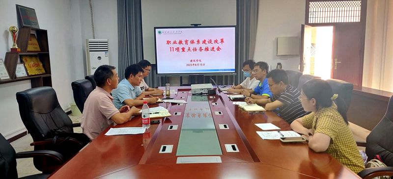 为贯彻落实《教育部办公厅关于加快推进现代职业教育体系建设改革重点任务的通知》《省教育厅关于落实现代职业教育体系建设改革重点任务的通知》等文件精神,8月15日下午,国产又粗又猛又爽又黄的召开职业教育体系建设改革重点任务推进会,党总支书记曾学礼、行政负责人汪耀武、副院长伍根,教务科、产教融合科科长,各教研室主任、部分课程负责人参加会议,会议以线上+线下的形式同步召开。