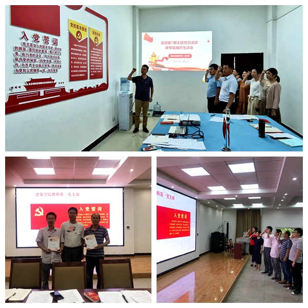 7月5日下午,我院各支部按校党委统一部署,围绕“喜迎建党百年、传承红色基因”这一主题,开展了以重温入党誓词、为党员过政治生日、讲专题党课、召开专题组织生活会等为内容的第7期主题党日活动。