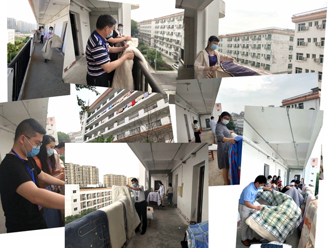 本期活动日前夕,为了给学生返校打造一个安全、整洁、舒适的生活环境,在征求学生意见前提下,各支部组织支部成员走出办公室,走进寝室为即将返校的2020届毕业生晾晒被子、打扫寝室卫生,实实在在的帮助学生解决问题,做好事、办实事。严格落实学校开学评估验收检查的通知要求,组织教职工开展防疫知识培训,建立了本部门人员健康台账,严格按照市疫情防控指挥部和上级主管部门要求,做好开学复课准备工作,毕业生返校期间的疫情防控工作。