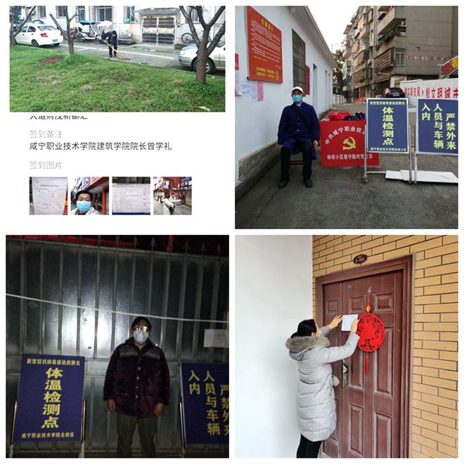 组织党员干部下沉到一线开展“亮身份、践初心、比作为”活动。党总支书记黎八保除了主持本院防疫工作还担任林校区临时党支部书记,带领小区全体党员开展卡口值班、入户排查、包保到户、代购服务、特殊人群关怀、小区文明卫生建设;院长曾学礼参与本院防疫工作的同时,还作为志愿者下沉到所居住地桂花街社区参加卡点值守、入户调查住房信息登记、桂花街张贴通知及核实调查情况等工作;叶晓琼、吴裕盛、刘汝俊、伍根等党员同志主动到所住小区、楼栋进行值守;非党员刘长海、何礼军、柯建华等教职工也在号召下参入到志愿服务工作中,他们用自己的方式,为这场战“疫”出一份力、献一份爱。2月14日、15日组织在温泉居住的17位教职工,积极响应学校号召到校完成被征用隔离的学生寝室整理任务,大家相互配合,咬紧牙关,争分夺秒在规定的时间内完成对104间寝室物品清点、装袋、就地封存,仔细打扫室内外卫生、通风等工作。
