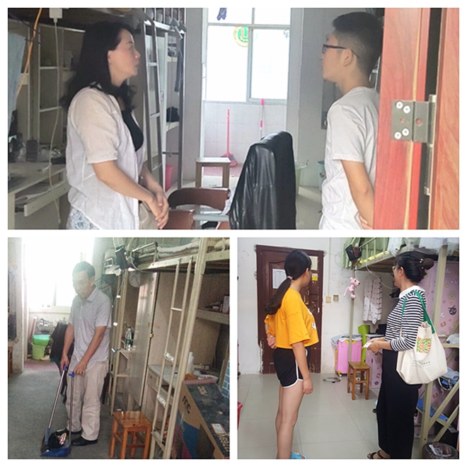 图3 教师党员下寝室指导学生做好卫生开展志愿活动