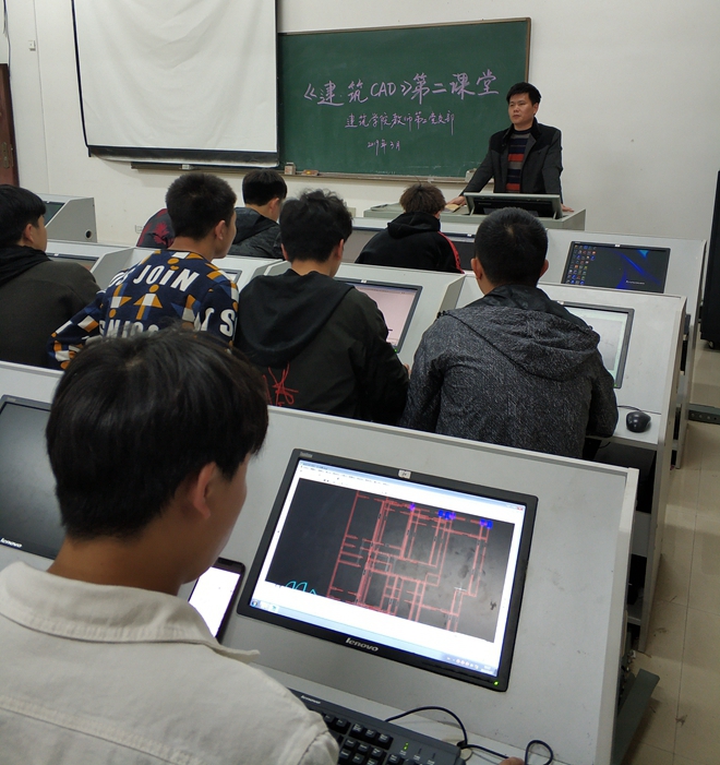 2018级建筑工程技术和建设工程管理专业的学生本学期开设了《建筑CAD》课程,因为是大一学生,大部分同学没有电脑,很多同学反映上完课后没法训练。《建筑CAD》是一门动手能力很强的课程,需要花大量时间训练才能学好。作为任课教师的教师第二党支部书记汪耀武与班级辅导员郭燕老师商量后决定,开设《建筑CAD》第二课堂,利用晚自习的时间对学生进行辅导答疑。这也为《建筑CAD》有效课堂建设奠定了良好基础。