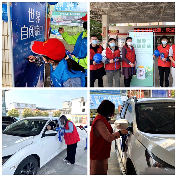 志愿者们在温泉城区6个加油站点配合七彩梦工作人员开展志愿服务活动,进行自闭症科普宣传、发放蓝丝带和自闭症宣传手册,邀请往来人群在宣传海报上写下对自闭症儿童美好祝愿,用爱心力量实现心与心的沟通,搭建自闭症儿童融入社会的桥梁。