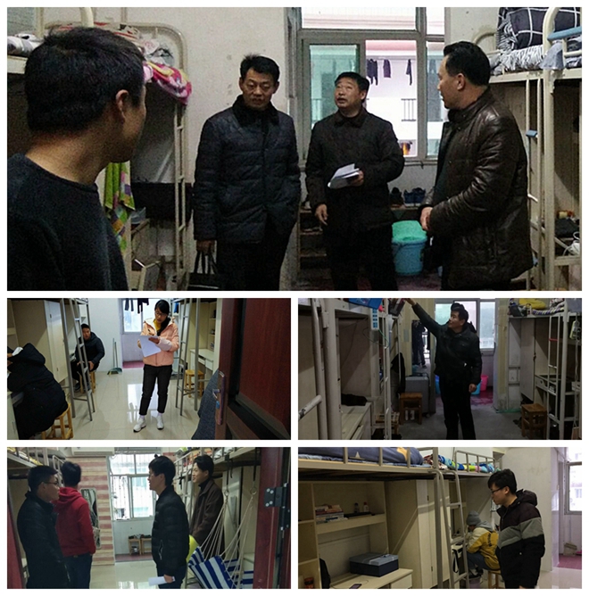 为加强我院学生宿舍安全管理,进一步提高学生安全防范意识,结合我院“文明寝室”创建活动——试行教职工联系学生寝室制度。12月24日下午,我院党政班子成员率领学院全体教职工深入学生寝室开展安全隐患排查。
