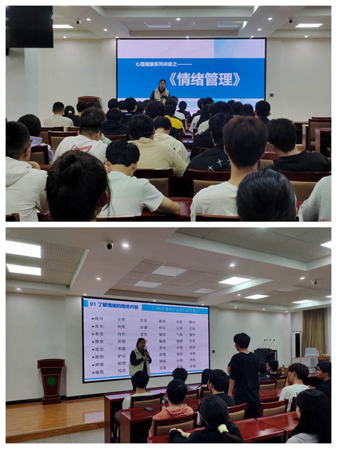 讲座中,张华容老师用浅显易懂的语言讲解了情绪管理的重要性和作用,结合实际案例,介绍了调节情绪的方法,帮助同学们如何处理自我心理调适、正确认识和处理人际交往中遇到的情绪问题,引导学生们了解情绪背后的真正的需求,鼓励大家正向表达出来。在互动环节,同学们踊跃发言,积极讲述了自己的经历和情绪。为帮助大家更好地应对不良情绪,张华容老师还组织学生们共同练习了多种调节情绪的方法。