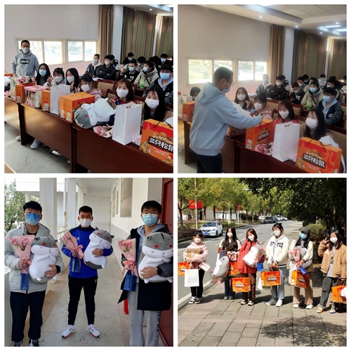 班会前,建工专业的男同学为女生们准备了小礼物和祝福语。班会正式开始,洪迪甫介绍女生节主题班会的背景及目的。目前建工专业的学生中女生较少,更需要关注班级女生的成长和身心健康。同时开展此次班会可以培养男女生之间的友情,促进团结构建和谐美好的班集体,丰富大学的课余生活。班会上,洪迪甫和21级建工专业的男生们向女生送上精心准备的鲜花、蛋糕和手工艺品等贴心的小礼物,并向女生表达真挚的祝福,让女生深深感受到关心和爱护。