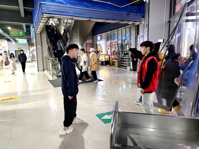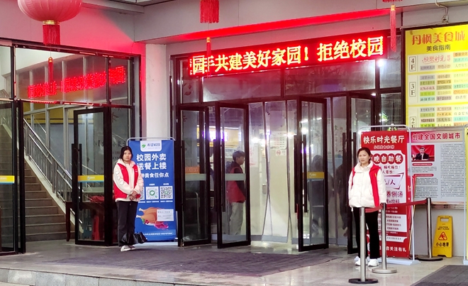 图1 志愿者劝导就餐学生按出入口进出餐厅