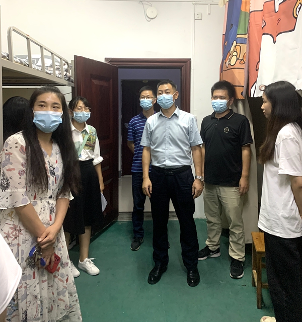 院领导来到新生寝室亲切地与同学们交谈,询问他们是否适应校园生活,宿舍有无安全隐患:空调是否正常运行、门窗玻璃有无损坏、房间是否漏水、用电是否安全等。走访中辅导员对同学们在第一次班会上的表现和发言也进行了交流,并鼓励学生在今后的生活中可以多展现自己的优点。此外,院领导也鼓励学生发挥专业特长,创建文明寝室。