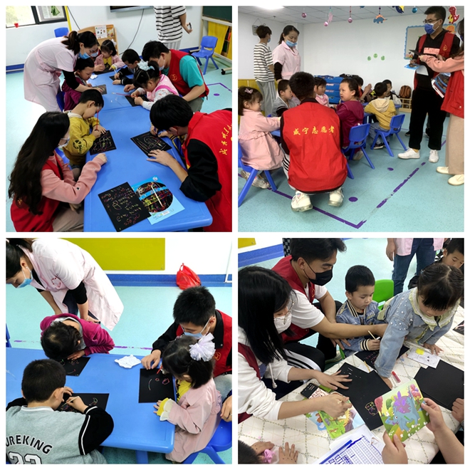 志愿者们为此次活动精心设计了游戏互动环节,与康复中心的小朋友们积极互动,活动在欢声笑语、其乐融融中顺利开展。小朋友们在游戏中学会互相帮助、团结合作,增进了彼此之间的感情;志愿者们在这段短暂却温暖充实的时光中收获了感动。活动结束后,志愿者们将精心准备的小礼物送到每个小朋友的手中,收到礼物的小朋友脸上洋溢着开心的笑容。