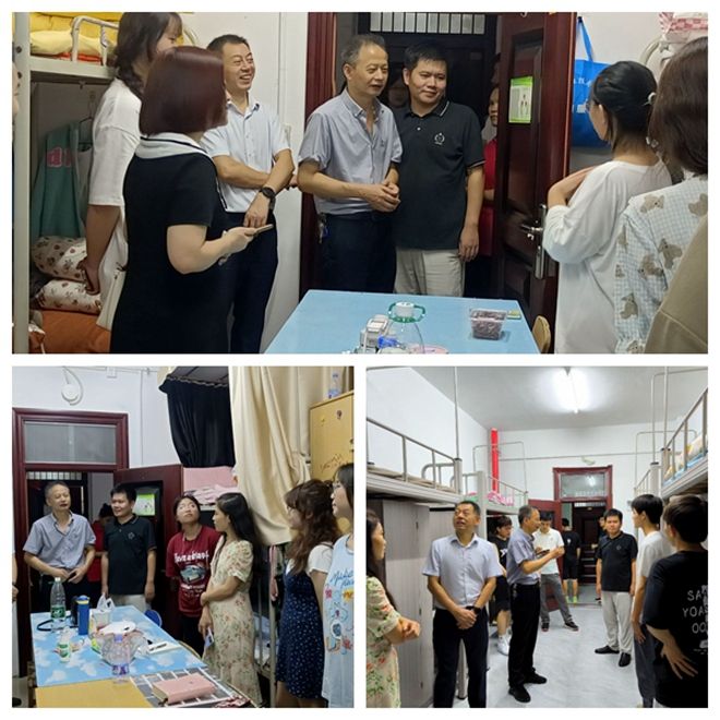 每到一个寝室,学院领导都会亲切的询问新生:“来自哪里”“学校饭菜是否可口”“是否能够适应气候”“来学校有没有遇到什么困难”,同时新生们也都很热情的介绍自己家乡的风土人情及分享对大学生活的感受。