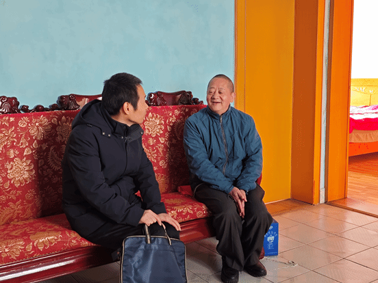 在交谈中,得知镇老伯爱人已去世多年,视力也出现严重障碍,加之儿女工作繁忙,因而多半时间独居家中,出行难、交流少、隐患大。两位老师均表示,后面会常来镇老伯家里坐坐,做些“连心饭”,拉拉家常,出门走走。